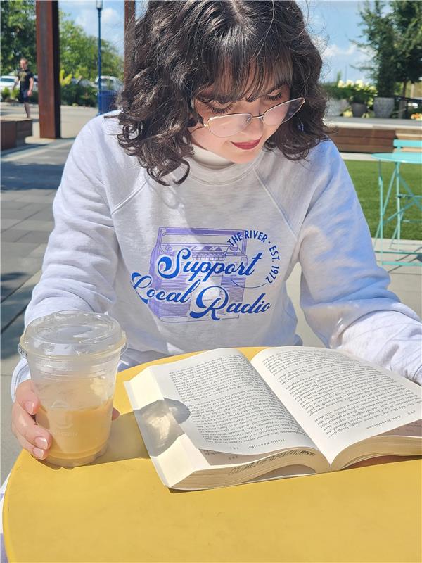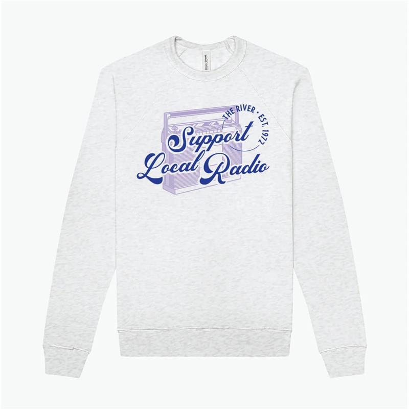 "Support Local Radio" verbiage over vintage radio graphic. "The River est. 1972"